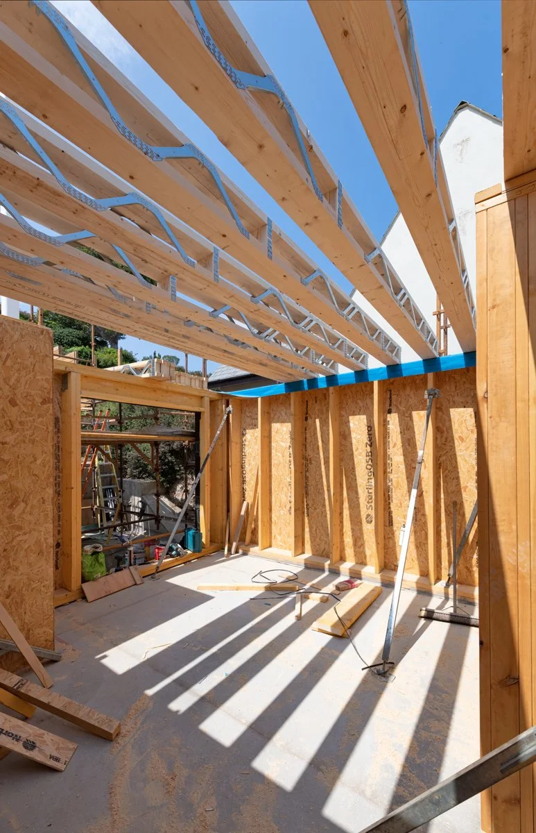 The house is being constructed using sustainable principals such as Photovoltaic (PV) roof slates, green roof, rainwater harvesting, permeable paving, passivhaus levels of energy performance, etc. Building to passive house standard ensures that the house will remain energy efficient for many generations to come.